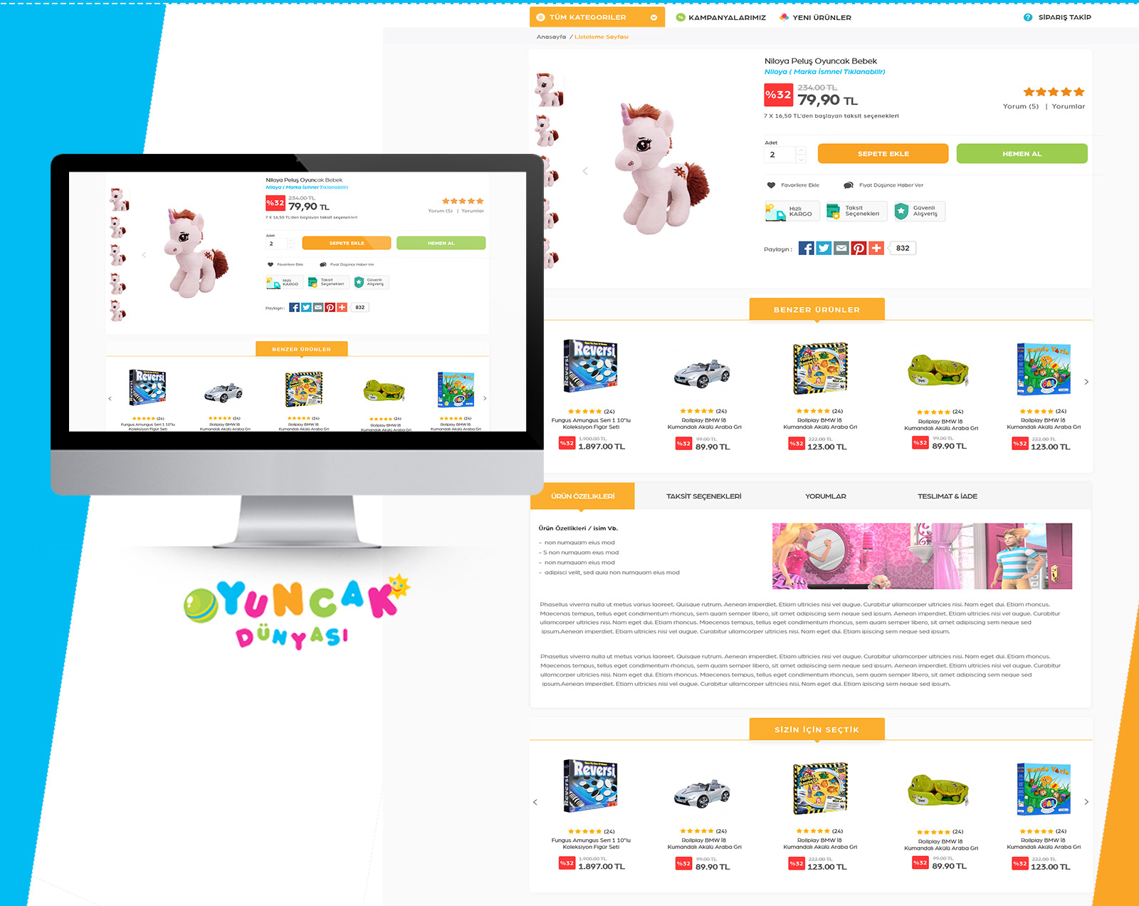 A lovely toy store, tried to create colorful and enjoyable style.Made for Projesoft Company